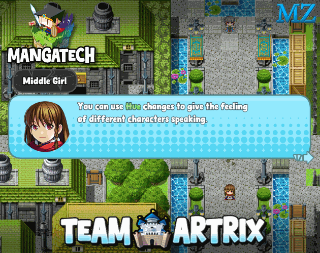 - Use PLUGIN COMMAND (Set Message Theme to "Mangatech") to use the message theme or change the message theme hue value